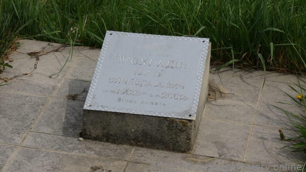 Напис: Тут спочиває/ Прохладін Юрій Вячеславович 21.06.1962-5.10.2002р./Вічна пам’ять/