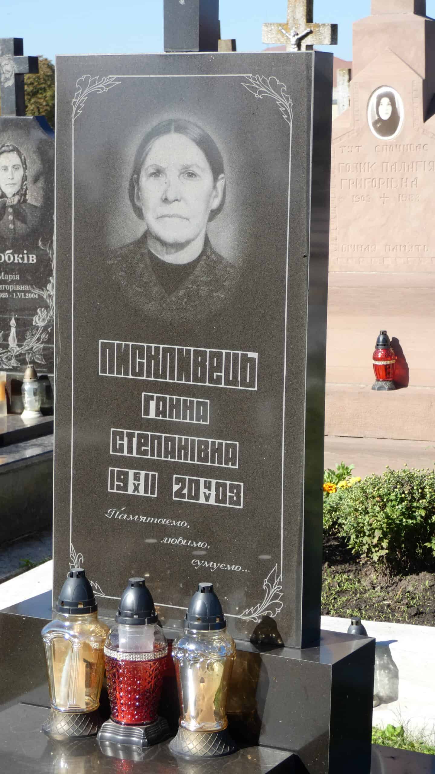 Похований (на): Пискливець Ганна Степанівна 06.10.1911-04.05.2003