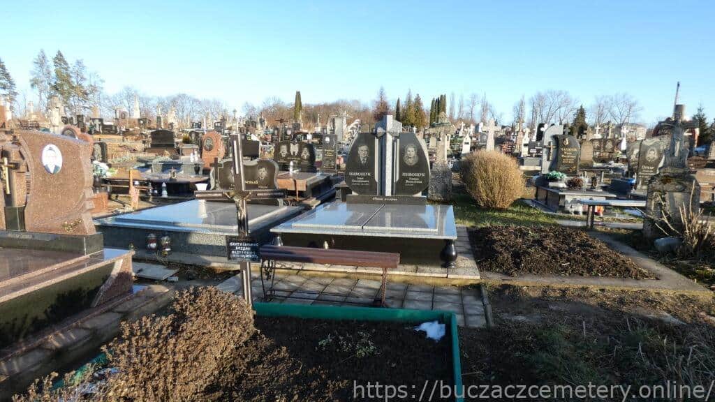 Місце поховання позначено гранітним нагробком із плит та двох стел,. Між стелами гранітний хрест. На стелах вигравіювані портрети похованих та текст.