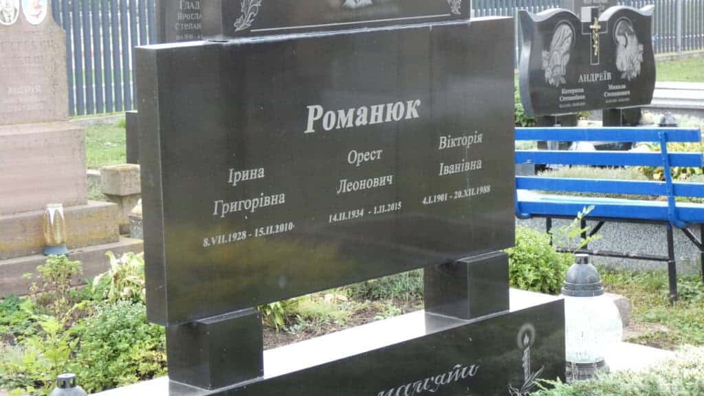 Похований (на): Романюк Ірина Григорівна 08.07.1928-15.11.2010 Романюк Орест Леонович 14.02.1934-01.02.2015 Романюк Вікторія Іванівна 04.01.1901-20.12.1988