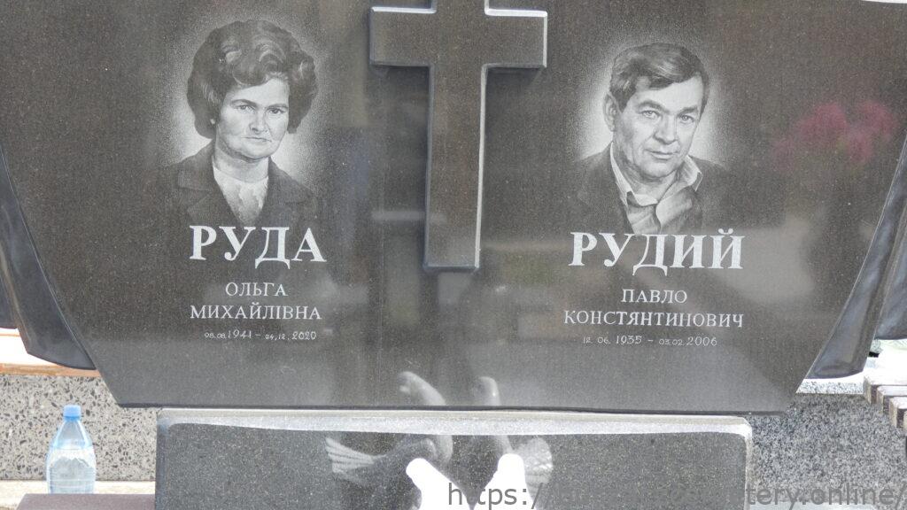 Напис: РУДА ОЛЬГА МИХАЙЛІВНА 08.08.1941-24.12.2020/ РУДИЙ ПАВЛО КОНСТЯНТИНОВИЧ 12.06.1935-03.02.2006/