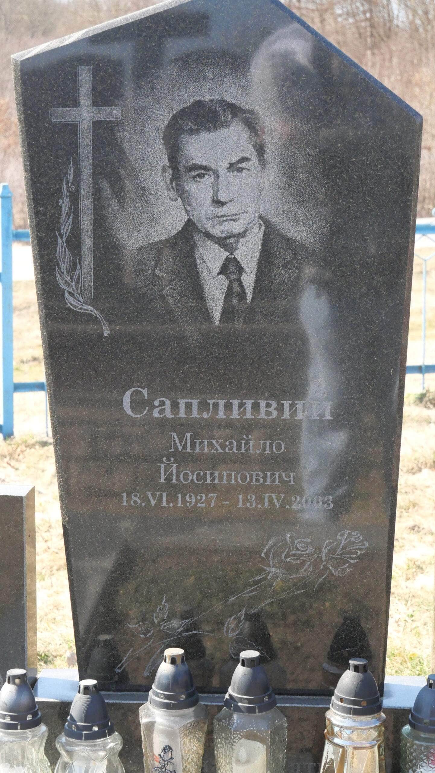 Номер могили: 110Похований (на): САПЛИВИЙ Михайло Йосипович 18.06.1927 – 13.04.2003Матеріал: граніт ПЕРЕГЛЯНУТИ НА КАРТІ Переглядів: 6Категорії: ЦвітоваТеги: Buchach cemeteriesБучачКладовищаМогилаЦвітова 0 коментарівЗалишити відповідь Скасувати коментарВаша e-mail адреса не оприлюднюватиметься. Обов’язкові поля позначені * Ім'я * Email * Сайт Що в вас на думці? Зберегти моє ім'я, e-mail, та адресу сайту в цьому браузері для моїх подальших коментарів.