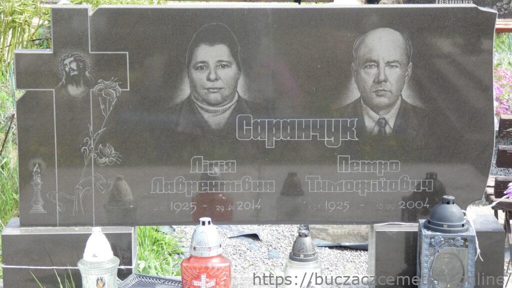 Напис: Саранчук Лідія Лаврентіївна 2.10.1925-29.01.2014/ Петро Тимофійович 1.01.1925-16.09.2004/