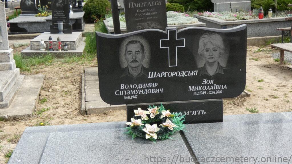 Напис: Шаргородські/ Володимир Сігізмундович 20.03.1947/ Зоя Миколаївна 31.12.1949-07.06.2010/ Вічна пам’ять/
