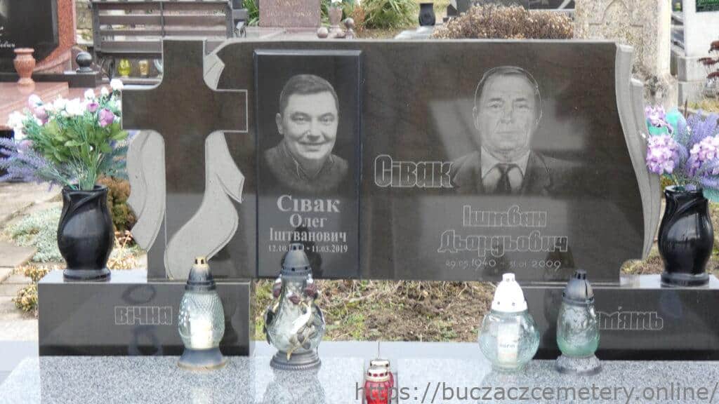 Напис: Сівак Олег Іштванович 12.10.1970-11.03.2019/ Сівак Іштван Дордьович 20.05.1940-31.01.2009//Вічна пам’ять//