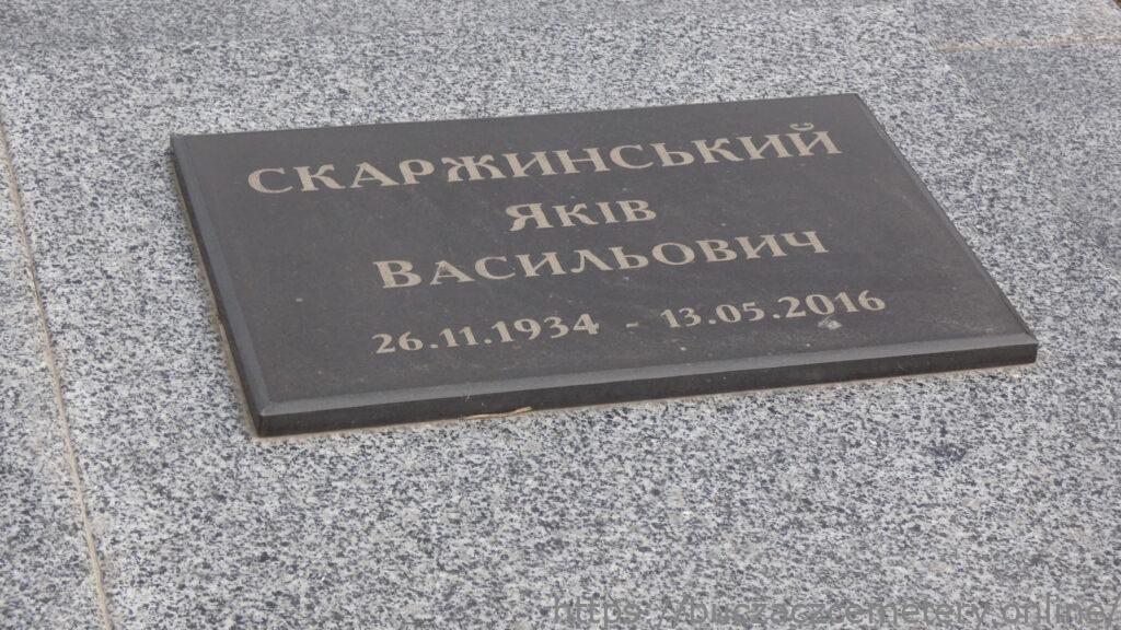 Напис: Скаржинський Яків Васильович 26.11.1934-13.05.2016 Скаржинська Ольга Іванівна 28.02.1938-22.04.2019