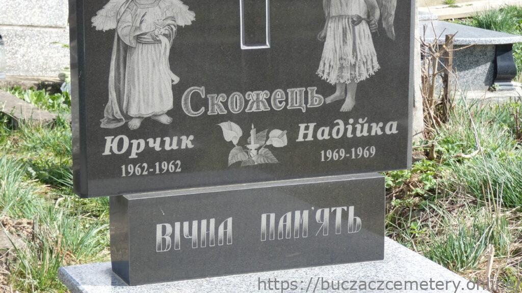 Напис: Скожець/ Юрчик 1962-1962/ Надійка 1969-1969/ Вічна пам’ять/