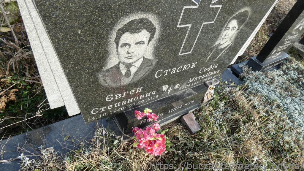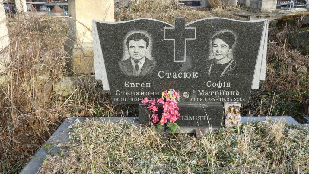 Напис: Стасюк Євген Степанович 14.10.1940-09.09.2015/ Стасюк Софія Матвіївна 29.29.05.1937-19.05.2004/ ВІЧНА ПАМ’ЯТЬ//.