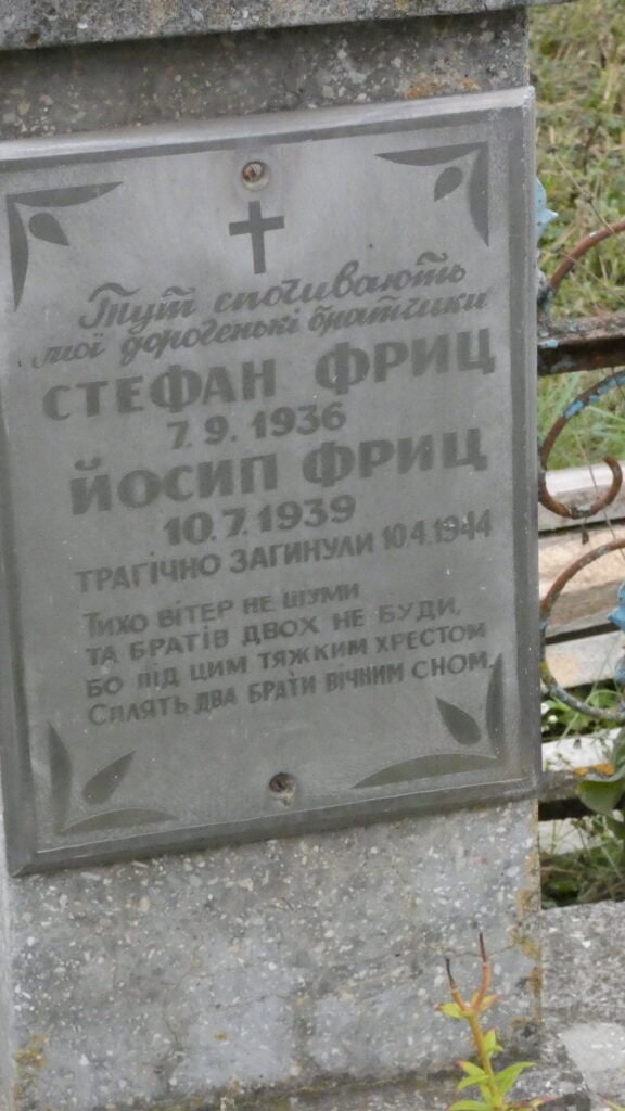 Тут спочивають мої дорогенькі братики/ трагічно загинули/ Тихо вітер не шуми/ та братів двох не буди/ бо під ними тяжким хрестом Сплять два брати вічним сном/
