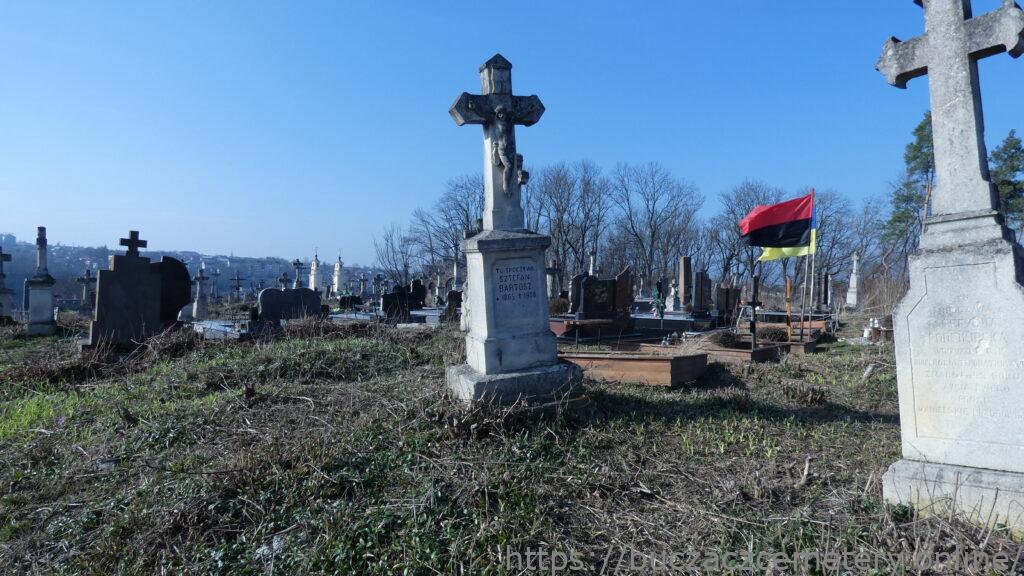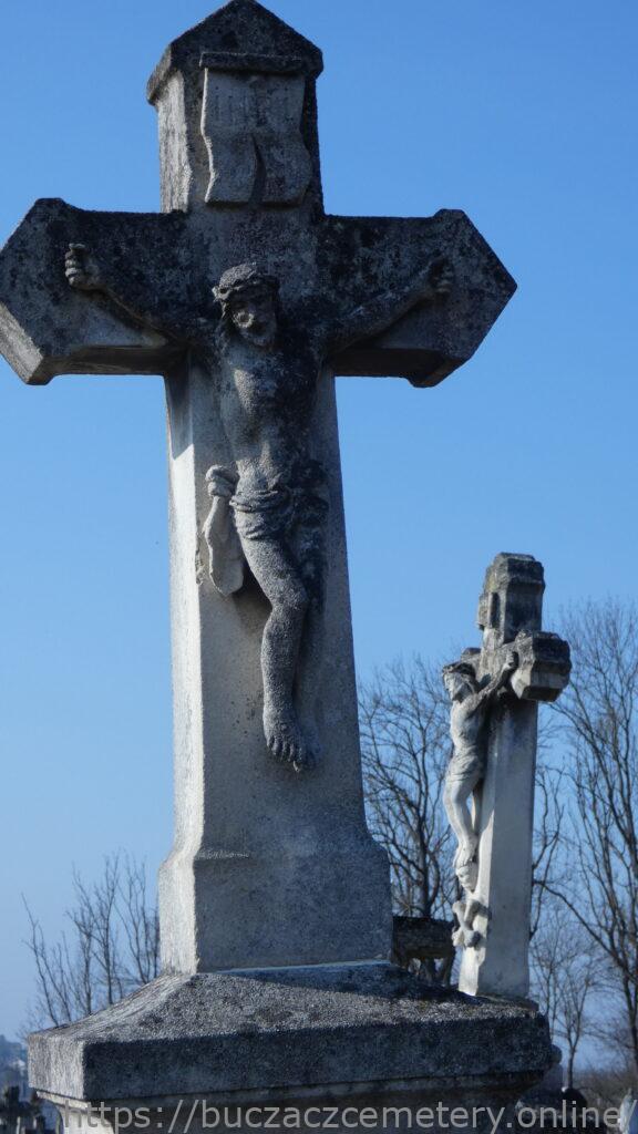Місце поховання позначене надгробком, у головах якого встановлено хрест на двоступеневому постаменті та підставці. Хрест із раменами, що завершуються пірамідальними ковпаками, на постаменті. На перехресті рамен — рельєфна фігура Христа з титулом угорі. Перша сходинка цоколя з профільованими верхніми краями. Друга сходинка цоколя вкрита чотирисхилим дахом. З трьох сторін різьблені обрамлення з чверть кругло зрізаними верхніми кутами. На лицьовій стороні є подібна панель з вигравіюваним написом.