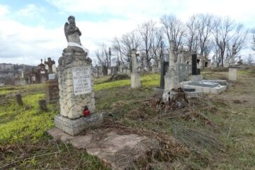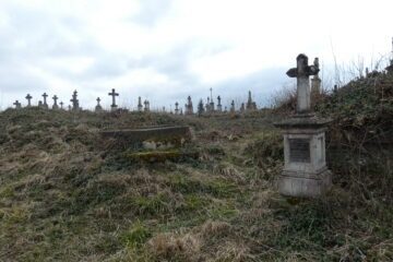 Місце поховання позначено хрестом на двоступеневому постаменті та двоступеневій основі. Хрест із ромбоподібними раменами на постаменті. На плечі — барельєфний титулус. Перша сходинка цоколя з профільованими верхніми краями. Друга сходинка цоколя за допомогою профілювання переходить у чотирисхилий дах. З трьох боків різьблені рамки з чверть кругло зрізаними верхніми кутами. На Читати далі
