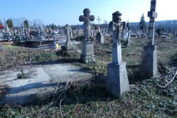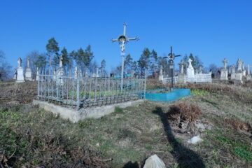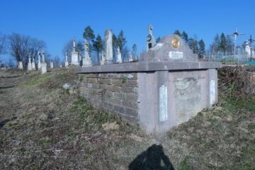 Гробниця має прямокутний план і перекрита ширшою плитою з дещо заглибленим фронтоном, з увігнуто-опуклою аркою та сходинкою. У фронтонній зоні рельєфно зображено медальйон із зображенням голови Христа у терновому вінку, унизу — панель із написом чорною фарбою (1). Фасад замкнутий двома пілястровими стрічками, між якими зараз замуровано вхід. У полі Читати далі