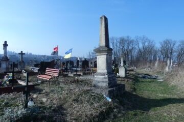 Місце поховання позначене обеліском на постаменті та триступеневій основі, з високою смугою. На передній частині обеліска вирізьблено діамантовий хрест. Перша сходинка основи значно ширша, зі скошеними верхніми краями. Друга сходинка основи з профільованими верхніми краями. Третя сходинка основи з сильно профільованими верхніми краями. Цоколь зі спрощеним антаблементом, що складається з Читати далі