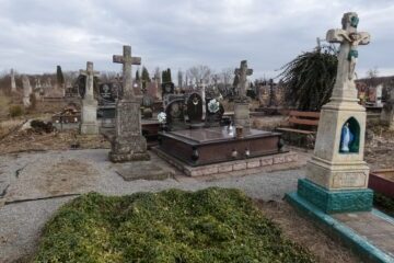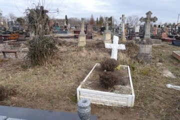 Місце поховання позначено хрестом на двоступеневому постаменті та підставці, з перев’язкою. Хрест із раменами, що завершуються у вигляді трилисника, на постаменті. На перетині рамен висічено менший хрест. Перша сходинка плінфи з профільованими верхніми краями, з гравійованим написом на лицьовій частині (1). Друга сходинка цоколя через профілювання переходить ступеневий дах. Спереду Читати далі