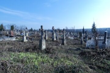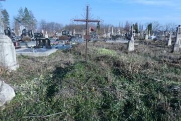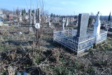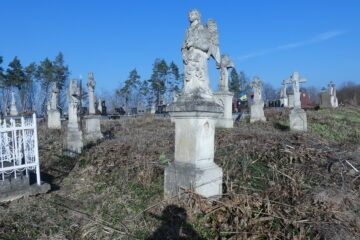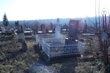 Місце поховання позначене фігурою ангела на двоступеневому постаменті та підставці. Ангел, одягнений у довгий, густо складений одяг, тримає вінок обома руками перед собою. Перша сходинка цоколя з профільованими верхніми краями. У правій стороні вирізана рамка з написом всередині. Друга сходинка цоколя вкрита монументальним дахом. З правого боку — дощечка у Читати далі