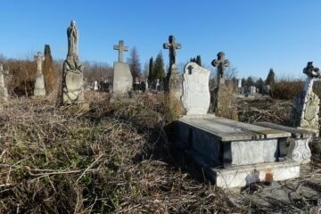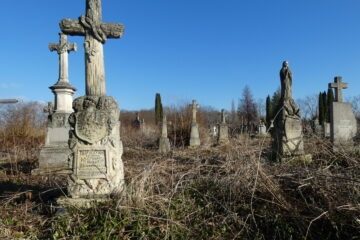 Місце поховання позначене надгробною плитою, в узголів’ї якої встановлено хрест на триступеневому постаменті та підставі. На профільованому постаменті хрест у восьмикутній формі з раменами, що завершуються пірамідальними шапочками, з виступами. На перетині гербів вирізьблено менший хрест і барельєфний вінок із троянд, що нависає над ним. Основа зі скошеними верхніми краями. Читати далі