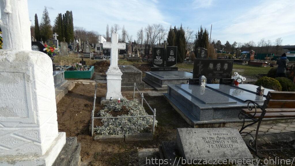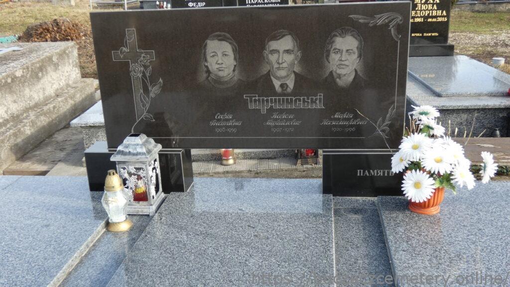 Напис: ТАРЧИНСЬКІ/Софія Гнатівна 1908-1959/Кароль Михайлович 1907-1972/Марія Казимирівна 1920-1996//ВІЧНА ПАМ’ЯТЬ/