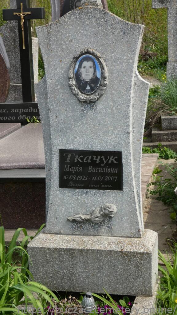 Напис: Ткачук Марія Василівна 10.08.1921-11.01.2007/ Вічна пам’ять/