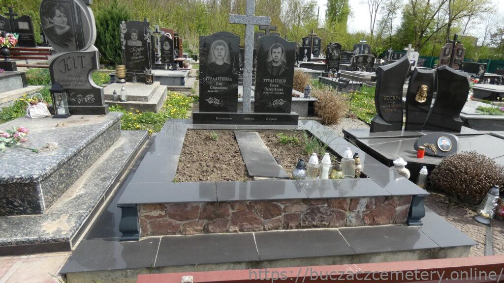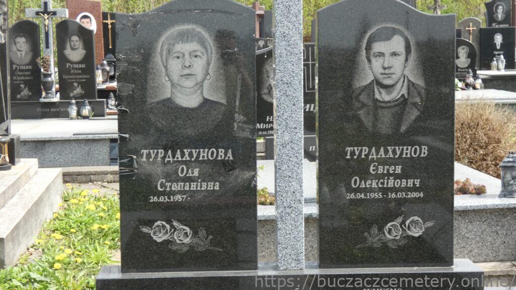 Напис: ТУРДАХУНОВА Оля Степанівна 26.03.1957-/ ТУРДАХУНОВ Євген Олексійович 26.04.1955-16.03.2004/