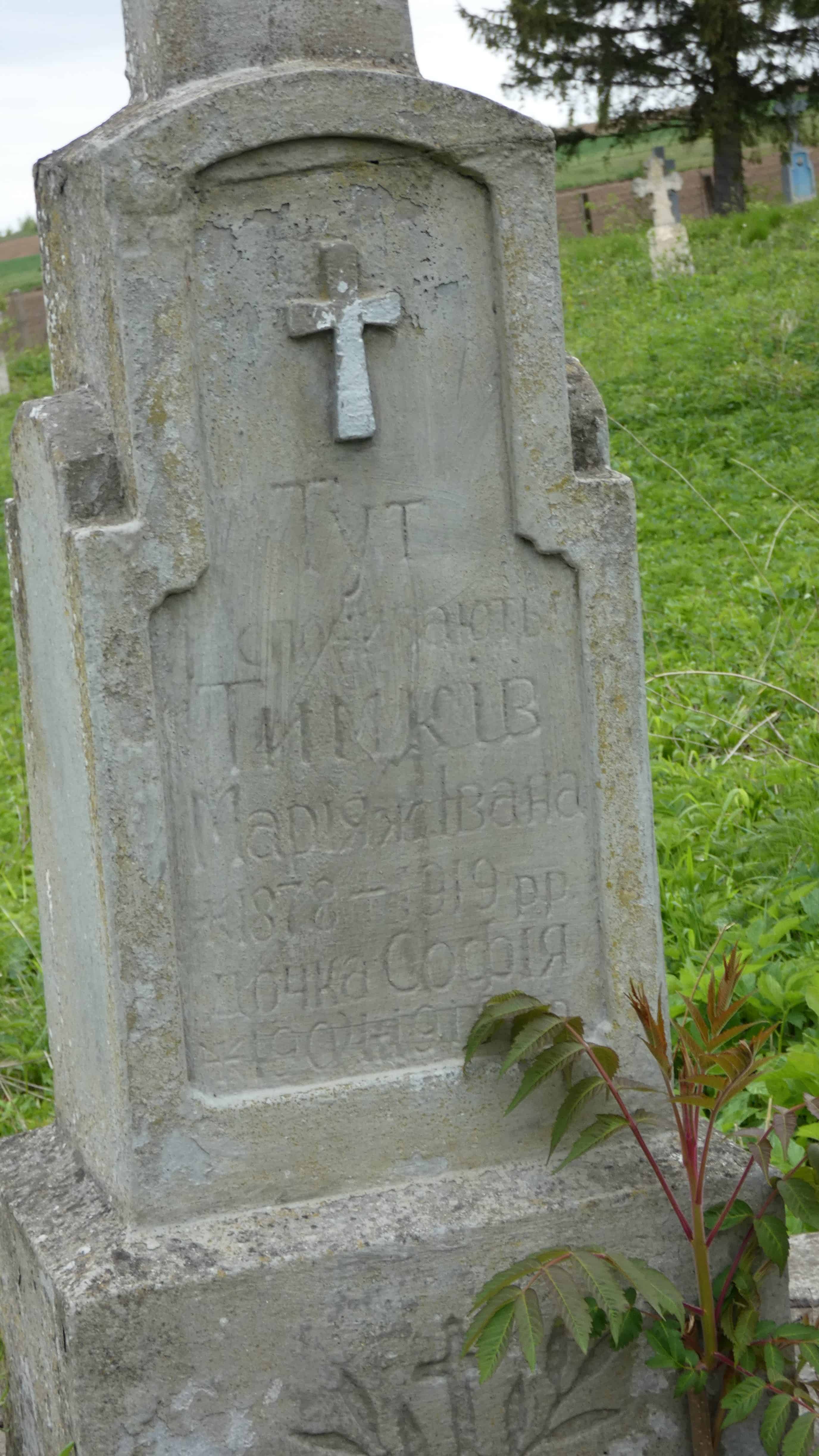 Похований (на): Тимків Параска д. Івана 1902-1919 Тимків Онуфрей 1914-1922
