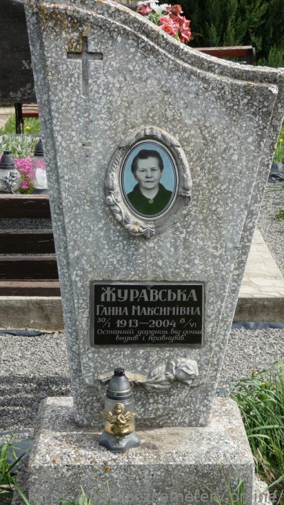 Напис: Журавська Ганна Максимівна 30/1 1913-2004 /VI /Останній подарунок від дочки внуків правнуків/